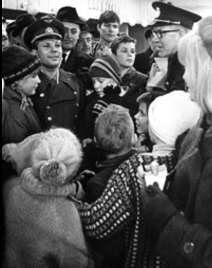 ”Till Nydalatorget kom Jurij Gagarin på eftermiddagen den 4:e mars 1964. De flesta som hade samlats på platsen förundrades genast av hans korthet. Trots en axelbred och vältränad lekamen gav han ett ganska ynkligt intryck. Visserligen bar han tjusig rysk mörkblå uniform, men med sina 157 cm i strumplästen imponerade han inte på Malmöborna. -Han ser ut som en liten fyrkant, var det någon som sa.”