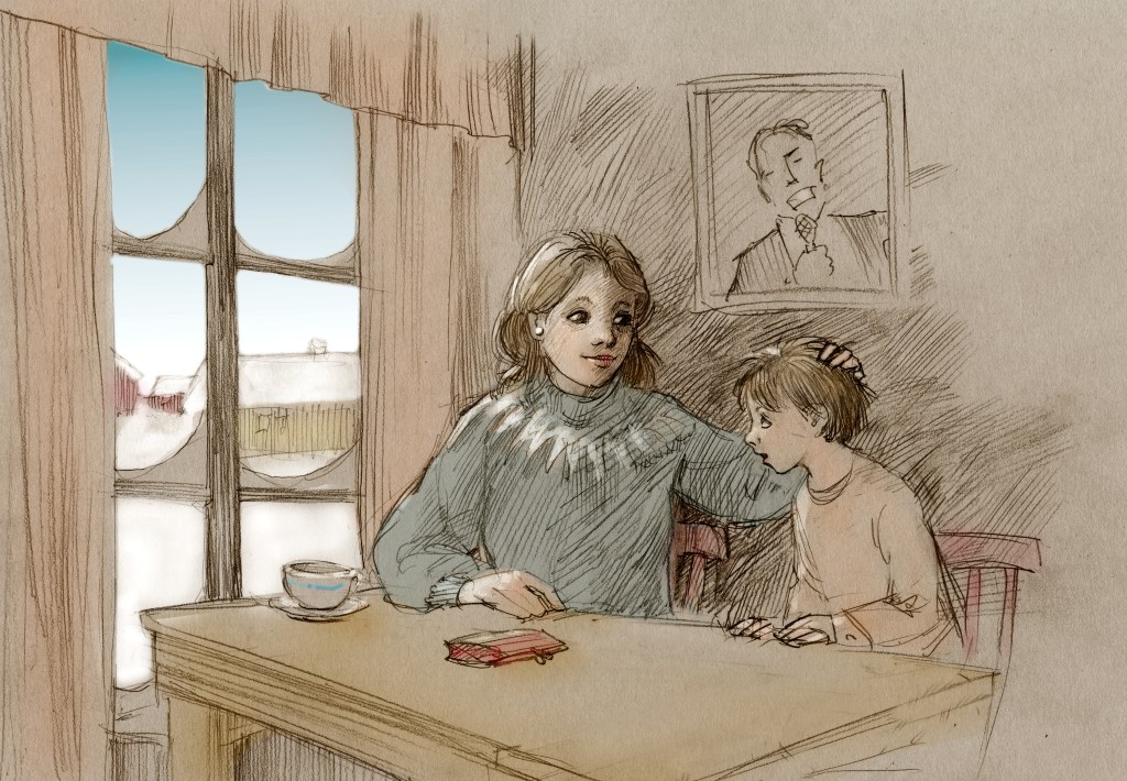”Ja, den tavlan har vi ju hemma. Det är ju konstnären Ronny Lingstam som målat den” Sven rättar henne ”Ja, men Ronny vill inte kalla sig för konstnär. Han vill bli kallad illustratör, men under alla omständigheter gör han vacker konst som går rakt in i hjärtat på en”