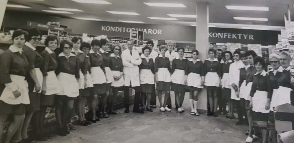 Konsum Nydalas personalstyrka vid öppningen 1964. Vera står i mitten.